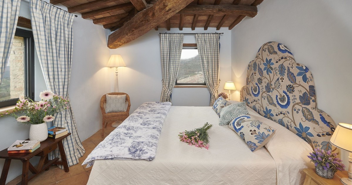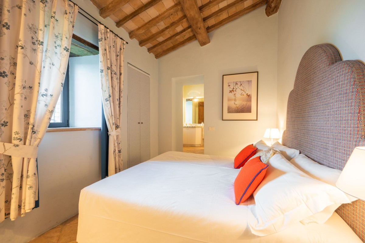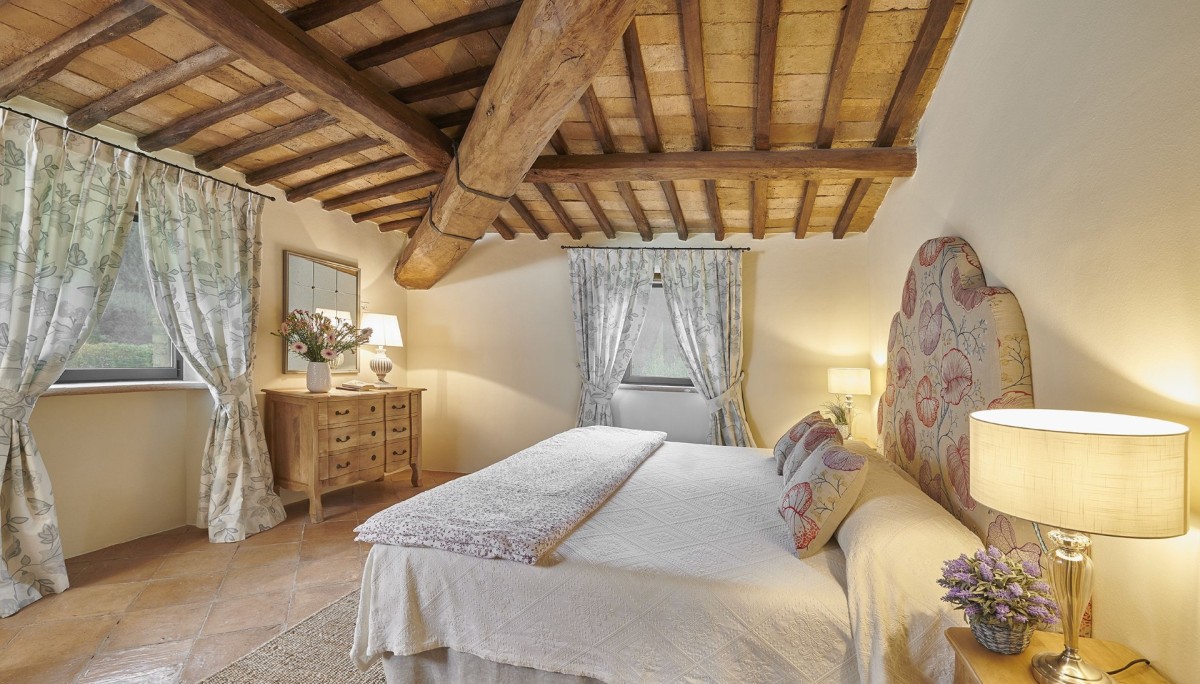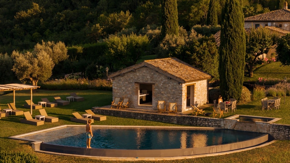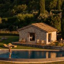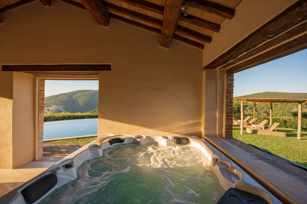 Subtilia is a charming 16th-century farmhouse perched atop one of Murlo’s hills, offering spectacular views of the medieval Antognolla Castle and its 18-hole championship golf course. These vistas are especially breathtaking from the expansive infinity pool, complete with a Jacuzzi.