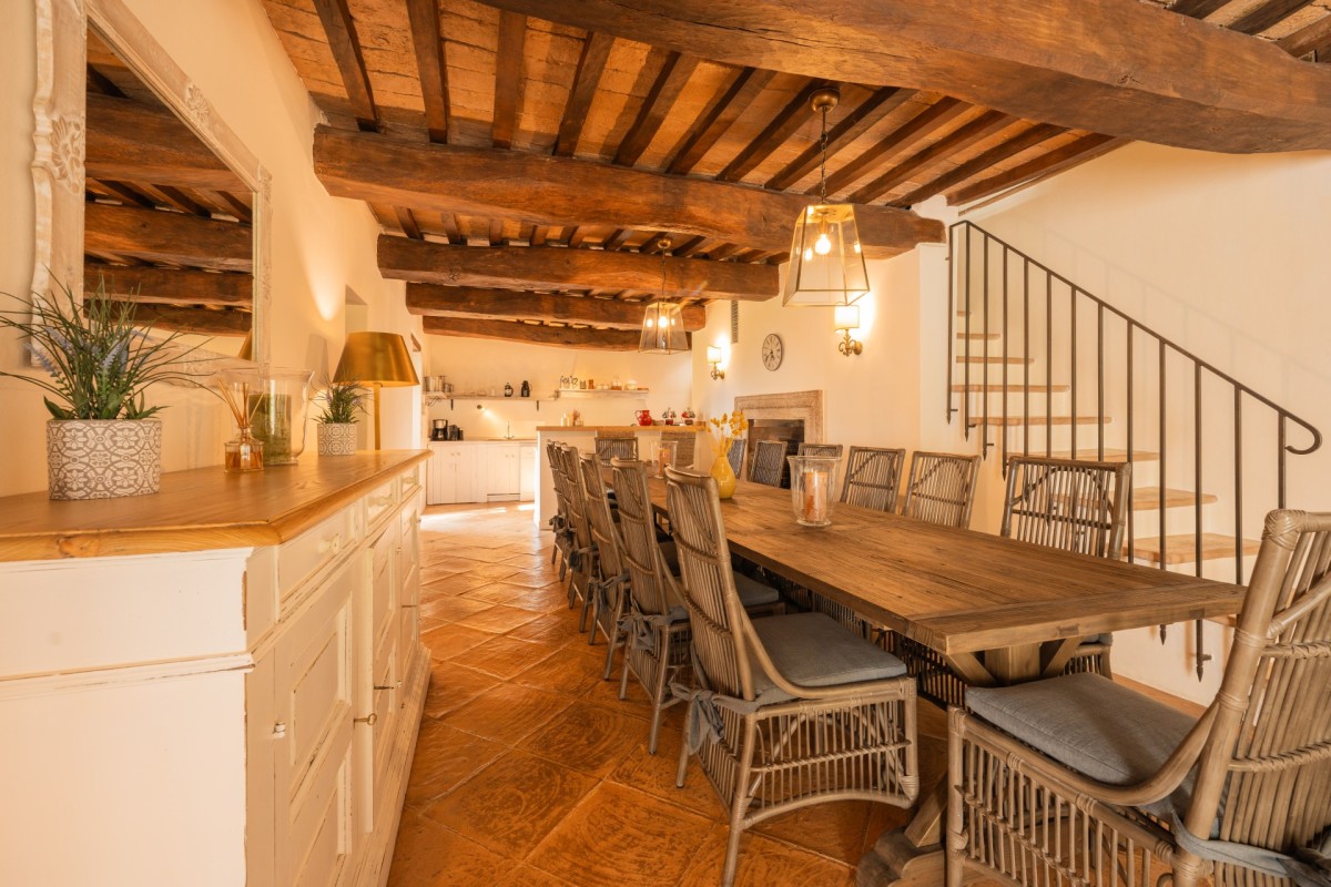 The property accommodates up to 16 guests, featuring six en-suite bedrooms and two children’s bedrooms, divided between the main villa and a lovely apartment, Olivo, ensuring exceptional comfort for larger groups.