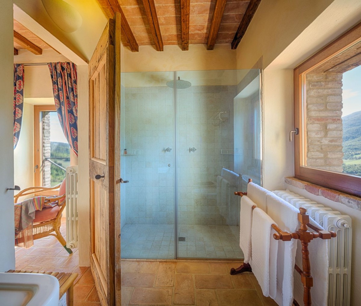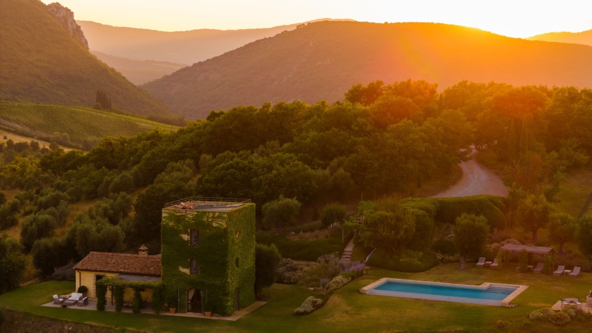 Torre is a stunning villa rebuilt on the ruins of a medieval defensive tower within the Murlo Estate. Its position offers an extraordinary view over the wooded valley below—one of the most captivating landscapes imaginable.