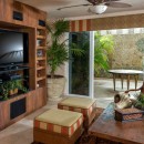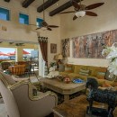 From the exterior, Casa Alcini exudes a southwestern charm, surrounded by cacti and native flora. A water feature provides a serene contrast to the arid landscape, creating a moment of tranquility before you step inside.