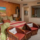 Bedroom 7: Bedroom with a queen-size bed, A/C, ceiling fans, WiFi, TV, safe, ocean view, and shared bathroom with shower, double vanity, and WC. 2 guests maximum
