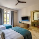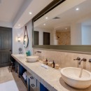 Each of the three spacious bedrooms exudes luxury with opulent furniture and decor that mirrors the overall design of the villa. Lavish linens and plush pillows adorn both King and Double beds in Villa 2601. All three rooms boast ensuite bathrooms, ensuring everyone has their private space to prepare for the day. The expansive bedrooms welcome the Cabo sun through wide sliding glass doors, creating bright and open living spaces.