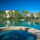 Regarding resort access, a property map in the photo gallery reveals that the condo is situated in the "Auberge Deluxe Villas" resort area. Guests enjoy access to pool "D" and Las Estrellas restaurant directly in front. The clubhouse "C" features a gym and entertainment center with pool table, foosball, and video games. A putting green "F" and children's playground "E" are also available, along with tennis courts "A." Note that the Esperanza Resort is a distinct property, accessible only to a limited extent, including its restaurants and spa with reservations. Exclusive pools such as "R" and "J" are reserved for hotel guests, emphasizing the private and luxurious experience at Villa 2601.