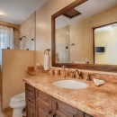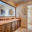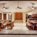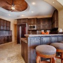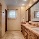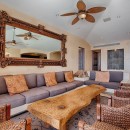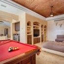 Inside, there is an elegantly furnished great room which features a large living room, formal dining room, and enormous gourmet kitchen. With a pale palette featuring cream walls and floors, the shared living spaces are furnished with richly stained, heftier furnishings that give the spaces perfect balance. Leather upholstery, sea grass and woven seating, and unique metallic art create an artisan atmosphere throughout. There is a full-sized home theater, a large gaming room with pool table, and then there are the enormous bedrooms.