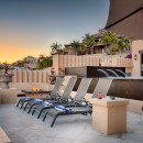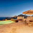 The multi-story property has been designed as a complete holiday destination. It features an astonishing range of outdoor spaces that include terraces and balconies as well as a private garden. At the top of the property is what is sure to become the group's favorite gathering space - the pool terrace. Massive and full of amenities, it includes a large, infinity edge pool that stands at the center of a lovely array of additional features. A large Jacuzzi, a pergola with swim up bar and outdoor kitchen, a sunken terrace with sun deck and fire pit, and unimpeded views of the sea.