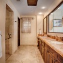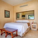 Each of the bedrooms has been designed as a master suite. They have traditional domed ceilings, premium bedding, and global inspired artwork that works well with the paler and more soothing hues used throughout. They all have a king bed, high end entertainment system, direct access to the balconies, private exterior entrances, and large ensuite baths.