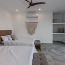 Bedroom 3: Bedroom with two double beds, ceiling fan, A/C, TV, WiFi, terrace, and en-suite bathroom with shower, vanity and WC. 2 guests maximum.