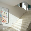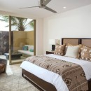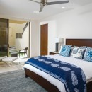 An exemplar of contemporary architectural brilliance, Pacific West showcases sleek lines, tasteful interiors, and the beauty of the natural surroundings. A driveway adorned with swaying palm trees greets you, responding gently to the warm ocean breezes. Within the house, modern decor graces every space with elegance and sophistication, and the neutral color palette of the floors and walls fosters a serene and revitalizing atmosphere. Vibrant artworks add bursts of color to the canvas of cream walls, and the terraces on each level are adorned with verdant foliage and vibrant pink bougainvillea.