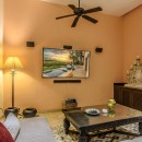The next level up is where the main living level is found, and here too you can savor many hours on the expansive balcony furnished as an outdoor living space, or just pop inside. The great room features a sunken living room with arched ceiling, and a few steps up takes you to the dining room and the gourmet kitchen. Equipped with the latest in stainless appliances and every possible bit of essential gear, it makes meal, beverage and snack preparation a snap. This villa also has a home cinema and a private bar area along with a few other outdoor terrace and lounges to enjoy.
