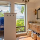 Bedroom 7: Lower floor bedrooms with two queen-size beds, ceiling fan, A/C, WiFi, and en-suite bathroom with bathtub, shower, vanity and WC. 2 guests maximum.
