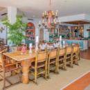 Inside, the level of luxury only increases and guests will be able to enjoy a fully-equipped fitness center, a state of the art home theater, spa treatment rooms, classic hammam (steam room), a magnificent gourmet kitchen, and décor that is beyond inspiring. There is a dining room that is flanked by walls of glass and which opens out to the terraces, a more casual dining area off the kitchen, and an enormous living room that also opens to the terraces and features the iconic domed brick ceilings, blend of rustic and classic décor, fireplace, and more.