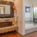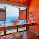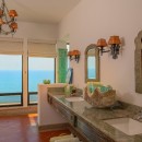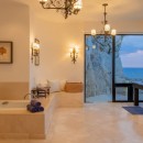 It is an enormous property perched on the cliffs above the sea and it has been carefully designed to make the most of its remarkable setting. Visitors have a dizzying array of terraces and balconies to enjoy, and each is furnished as an outdoor living space. Naturally, the enormous pool terrace is going to become a preferred location as it offers a gorgeous infinity-edge pool with swim up bar, sun decks, a large palapa furnished as a lounge, and an al fresco dining area large enough to accommodate a crowd of up to 60. There is also a putting green, outdoor fireplace, children's playground, al fresco shower, and so much more.
