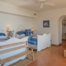 Bedroom 5: Bottom floor bedroom with four triple bunk beds, ceiling fan, A/C, WiFi, and en-suite bathroom with bathtub, shower, vanity and WC. 8 children maximum.