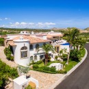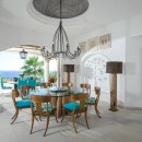 The gourmet kitchen boasts dual ovens and matching stainless steel appliances, complemented by a breakfast bar. The main living area seamlessly integrates indoor and outdoor spaces with its open design, adorned with subtle sophistication through walls of windows and glass doors. With abundant indoor and outdoor dining options, this spacious villa comfortably sleeps 14 in its six bedrooms, each equipped with an ensuite bath. Most bedrooms feature King-sized beds and private terraces with ocean views, while one room caters to the younger crowd with three matching bunk beds.