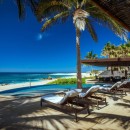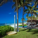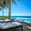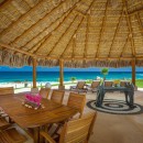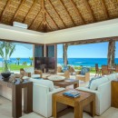 Indulge in the breathtaking surroundings with numerous opportunities to immerse yourself in the natural beauty and oceanfront vistas from virtually every vantage point. Witness the sunrise from beachfront lounge chairs, or unwind beneath the shade of towering palm trees while gazing at the infinity-edge swimming pool and spa. For a perfect end to your day in paradise, slip into the Jacuzzi tub as the sun sets, or dine al fresco overlooking the waterfront in one of the covered dining areas. The villa seamlessly blends indoor and outdoor living and entertaining spaces.