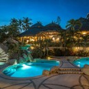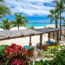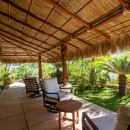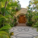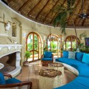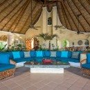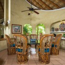 With accommodation for a total of 8 couples and 6 children under the age of 12, Villa Las Rocas is a tranquil haven. A winding pathway, lined with palm trees, guides you to a magnificent wooden door adorned with a smiling sun motif. Inside, the expansive open-plan living and dining spaces are enveloped by a colossal palapa that seamlessly connects to the pool terrace. This design allows the refreshing ocean breezes and the soothing symphony of waves caressing the shoreline to fill the space.