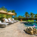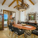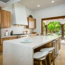 The newly renovated Italian Scavolini kitchen at Casa Alegria further enhances the property's extensive list of opulent features. It features a spacious central island with seating, state-of-the-art stainless-steel appliances, including a Viking refrigerator, dual sinks, wood cabinetry, and a wine fridge, creating a chef's dream space. This kitchen makeover extends to the dining area, which now boasts brand-new dining furniture, including a chic wooden table under a grand chandelier, offering seating for six. The space seamlessly opens up to an outdoor kitchen with a built-in grill and wood cabinetry.