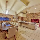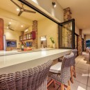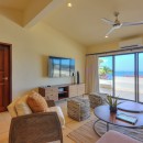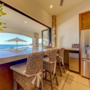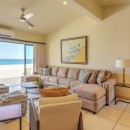 For the culinary enthusiast in your group, a gourmet kitchen equipped with professional stainless steel appliances awaits, offering everything needed to craft a 5-star meal. Enjoy the mesmerizing views from the kitchen's bar, overlooking the deep blue expanse of the Sea of Cortez. Adjacent to the kitchen, the open-concept living and dining area features expansive sliding glass doors opening to the terrace, creating a unique space for entertaining and gathering with loved ones. A large flat-screen TV and plush cushions and chairs guarantee utmost comfort.