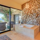 Inside Casa Manana, discover distinctive rock walls and accents adorning each of the five spacious bedrooms. Plush pillows and luxurious linens enhance your comfort, complemented by a flat-screen TV in every bedroom. Revel in breathtaking Pacific views from each room, ensuring an unforgettable stay in this lavish property. With ample space for up to 12 guests, Casa Manana ensures no one is left off your guest list.