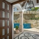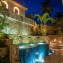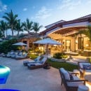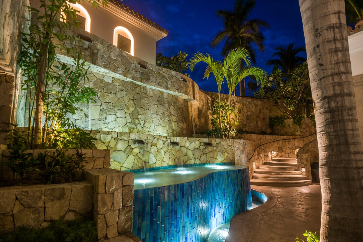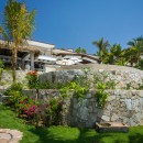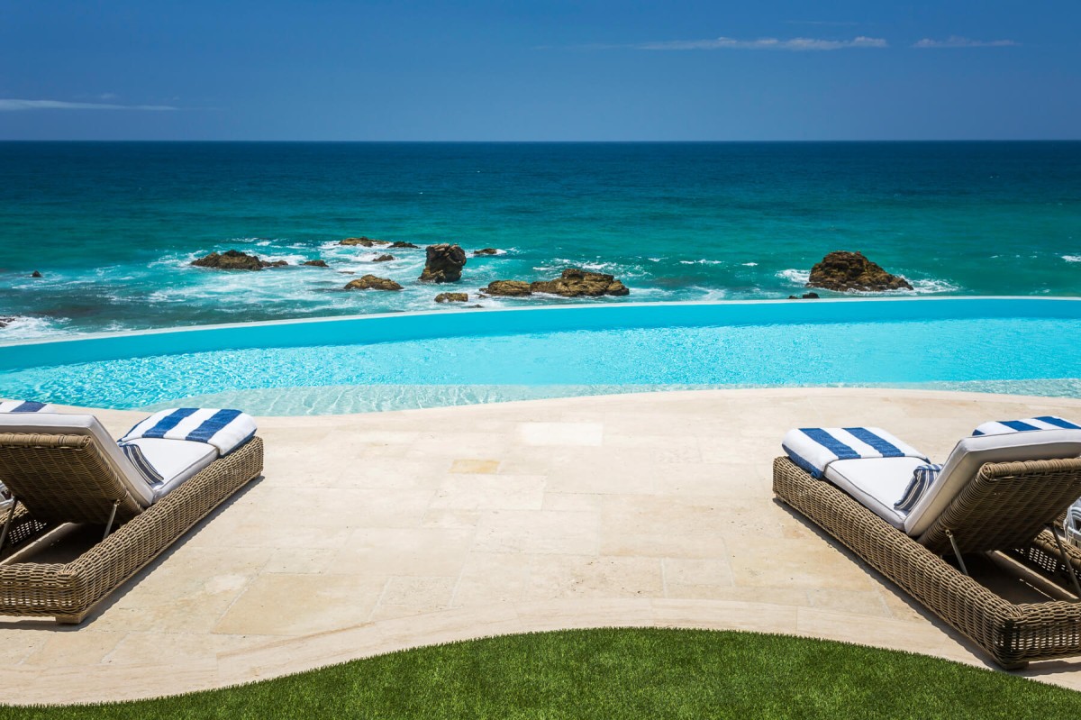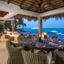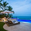 Just steps from the soft sand below, Casa Roca de Pajaro offers an unmatched connection to the ocean. Surrounded by lush tropical landscaping and towering palm trees, the property showcases uninterrupted sea views from nearly every angle. Guests can unwind on deck loungers, take a refreshing dip in the swimming pool with a child-friendly section, or relax in the Jacuzzi as the sun sets. The outdoor space also features a fire pit, outdoor fireplace, tranquil waterfall, barbecue area, and multiple seating and dining areas, including a shaded palapa overlooking the water.
