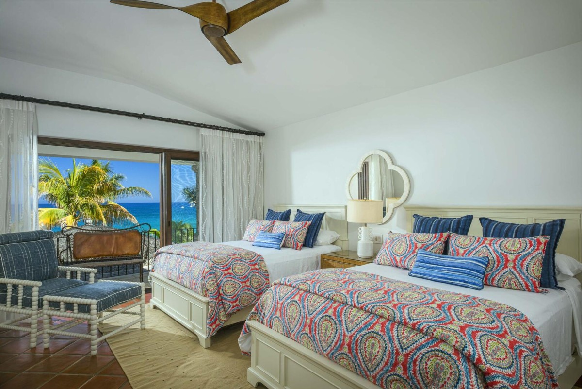 Bedroom 4: Bedroom with two queen-size beds, ceiling fan, A/C, WiFi, terrace with ocean view, and en-suite bathroom with shower, vanity and WC. 2 guests maximum.