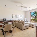 Nestled just a few steps away from the sandy shores and lapping waters, Enclave West 4 epitomizes an opulent, beachfront retreat within the exclusive Puerto Los Cabos community of Los Cabos. This desert contemporary-style residence seamlessly blends with the natural surroundings, mirroring the hues of its environment while offering guests an elevated level of luxury. Boasting six bedrooms and 6.5 baths, this home accommodates up to 12 guests, situated directly on the beachfront yet providing an intimate and almost private experience in one of the region's most celebrated master-planned communities.