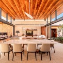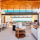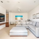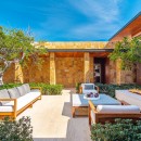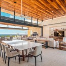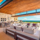 The outdoor space revolves around the captivating blue waves of the Sea of Cortez, inviting visitors to the soft sands and panoramic views. Eight deck loungers line the heated swimming pool and Jacuzzi, offering guests the choice of basking in the afternoon sun or seeking respite under the expansive deck's shade. The outdoor area features a gas grill, an outdoor wet bar with counter seating, and an al fresco dining table. Completing the ambiance is an outdoor stereo system and a full outdoor living room with comfortable seating, complemented by a fire pit and additional seating right on the sandy shore. Seamlessly transitioning between indoor and outdoor spaces, the home flows effortlessly from the outdoor terrace to the living room and into the interior courtyard.