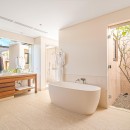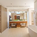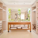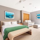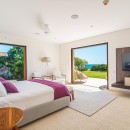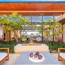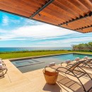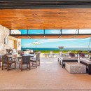 The main living room is discreetly tucked between massive glass doors, presenting breathtaking views of the rolling waves on one side and a serene, Zen-like courtyard with additional seating and a fire feature on the other. Even the six private bedrooms connect to outdoor spaces, allowing guests to wake up to the tranquility of the waves and the nearby beach. Spa-like baths feature luxurious soaking tubs and outdoor showers, effortlessly merging indoor and outdoor elements. The residence includes a gourmet kitchen with a wine fridge, a main living room, and an indoor dining table accommodating ten.