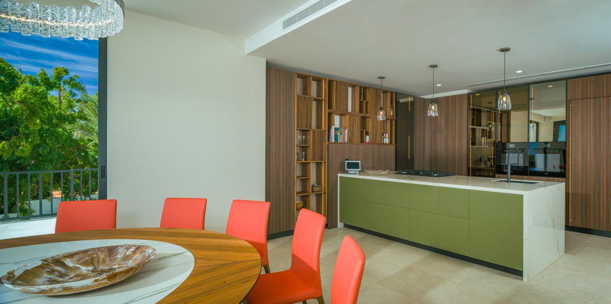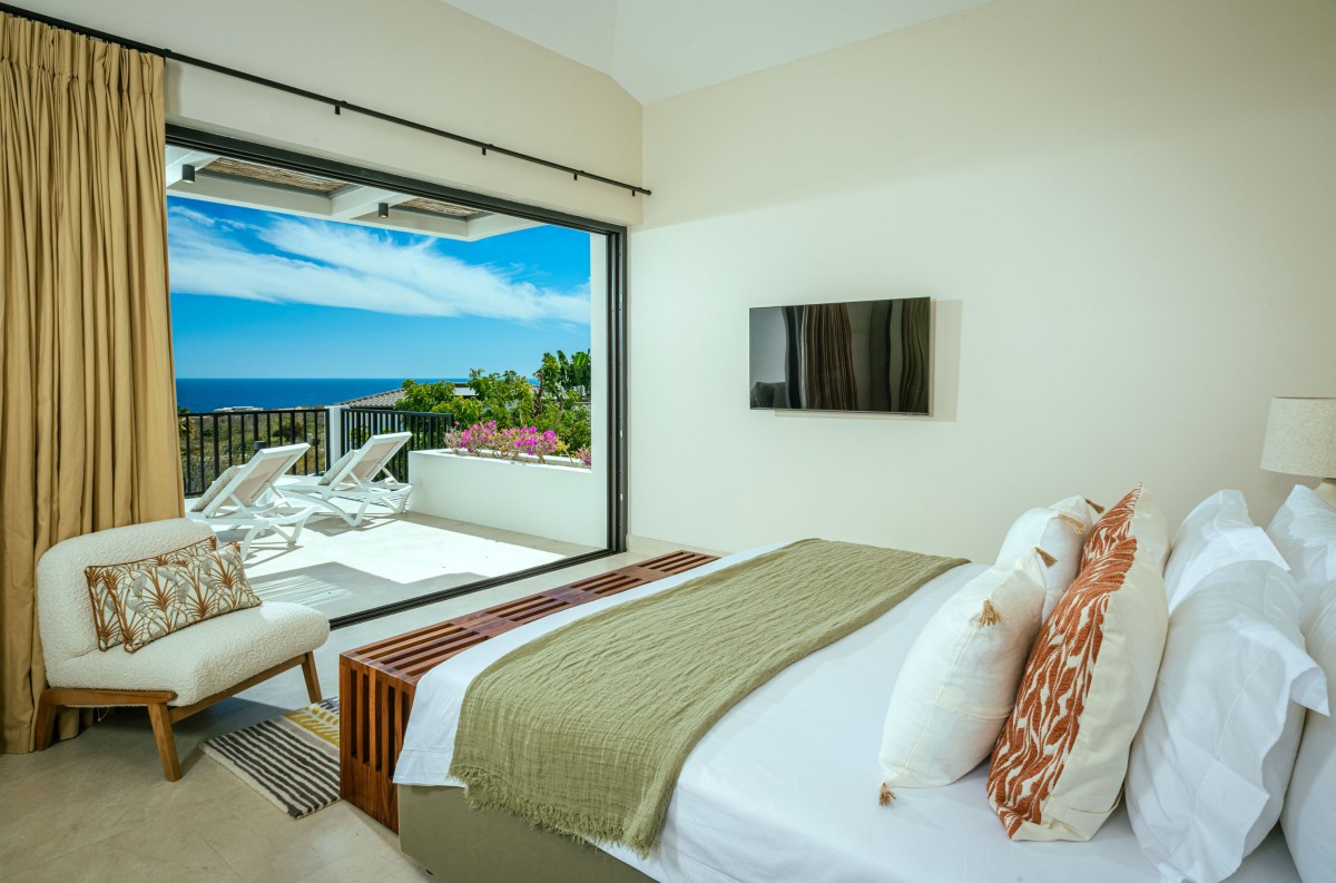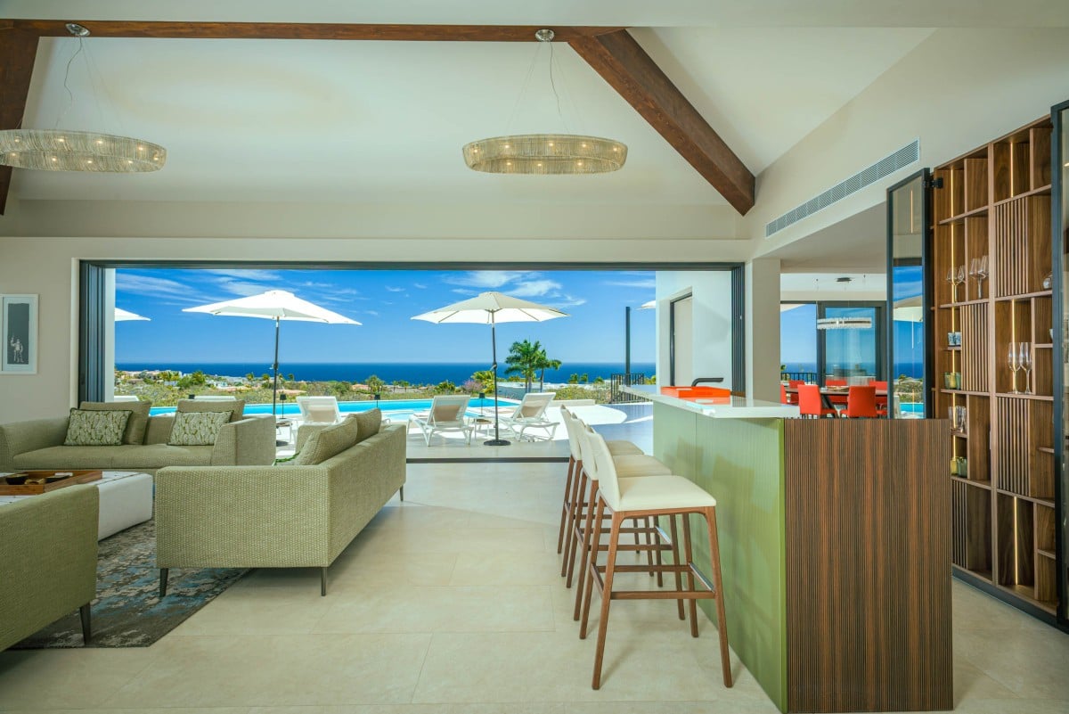 Casa Alba comfortably accommodates up to 12 guests, with five of the six bedrooms offering breathtaking ocean views. The interiors reflect understated luxury, with no detail overlooked. A bespoke kitchen and bar designed and built in Italy are complemented by stylish European furniture and lighting, creating a distinctive atmosphere unlike most properties in the area.