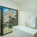 Casa Alba is ideal for entertaining. Guests can gather at the in-house bar with a wine fridge and ice maker while enjoying music streamed through the Sonos system. The large circular dining table seats 12 and is complemented by a gourmet kitchen equipped with premium Bosch, Miele, and Samsung appliances, along with a walk-in pantry and specialty items such as a Nespresso machine and ice-cream maker. A private chef can also be arranged upon request.