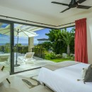 Bedroom 1: Master bedroom with a king-size bed, A/C, WiFi, TV, access to the pool patio, and en-suite bathroom with bathtub, outdoor shower, double vanity, and WC. 2 guests maximum