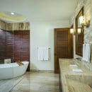 Bedroom 2: Master bedroom with a king-size bed, A/C, WiFi, TV, and en-suite bathroom with bathtub, shower, vanity, and WC. 2 guests maximum