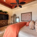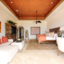 Outside, terraced desert landscaping descends from the pool deck down the hill, revealing the rest of the Fundadores community, including the exclusive Club Fundadores with its swimming facilities, fitness center, dining options, and spa services. The rental includes almost daily maid service, and it's conveniently located close to numerous indulgences and luxuries, mirroring the resort lifestyle in Puerto Los Cabos.