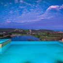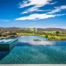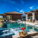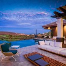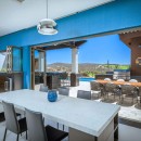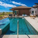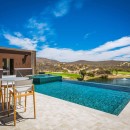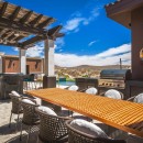 Exiting through the grand glass doors from the main living area, an outdoor kitchen, gas BBQ grill, pizza oven, and dining and lounge space unfold, highlighting another compelling aspect of La Casa de Villa. With views of the rolling hillside and the adjacent golf course, the refreshing swimming pool and accompanying Jacuzzi tub offer a serene retreat, surrounded by the exquisite countryside.