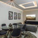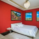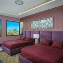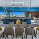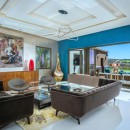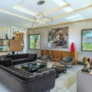 Boasting five bedrooms and 5.5 baths, the residence comfortably accommodates up to 16 guests in an elegant setting. Imported Italian and French furnishings complement the vibrantly decorated bedrooms, accentuating the home's unique design. The expansive open floor plan encompasses a gourmet kitchen with a wine fridge and seamlessly integrates indoor and outdoor spaces, allowing residents to savor the esteemed surroundings. For entertainment, the home theater room features a 100-inch cinema screen, providing a delightful space for gatherings with friends and family without leaving the property.
