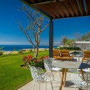 The interior is lavishly adorned with a blend of natural and engineered stone, along with wood accents, creating a subtle yet sophisticated ambiance that seamlessly flows from room to room. From the Caesar stone countertops in the kitchen to the marble baths with oak vanities, every detail is meticulously considered to ensure a truly indulgent experience. Gourmet Sub-Zero and Wolf appliances in the kitchen transition harmoniously to natural stone and porcelain tile flooring. The comfortable living room, spacious indoor dining area, and open kitchen capitalize on the mesmerizing ocean views. Featuring five bedrooms and more than six baths, this remarkable home effortlessly accommodates up to 10 guests, offering a full array of luxury amenities and inclusions.
