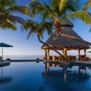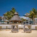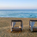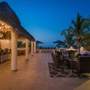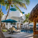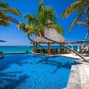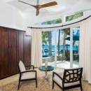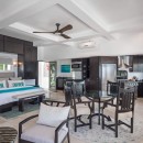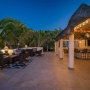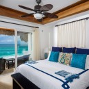 Taking inspiration from the splendor of its beachfront panorama, the interior features crisp white walls and accents of blue, extending from the peaceful private bedrooms to the spacious living, dining, and entertainment areas. With ample space for up to 17 guests, the villa further impresses with its gourmet kitchen, well-stocked wet bar, lofty ceilings, and an enviable atmosphere of contentment.