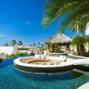 Unwind in style at the sunken fire pit, situated in the center of the sparkling swimming pool, where you can bask in ocean views. The pool area has recently undergone an upgrade with the addition of glass partitions, ensuring a high level of safety, especially for young children. The outdoor space also features a Jacuzzi, a shaded palapa for grilling, and elegant outdoor dining and lounge areas, complete with a private waterfall. Private terraces, each offering ocean vistas, grace many of the five ensuite bedrooms, providing the perfect secluded spots to savor the beauty of the surrounding area as the sun rises or sets.