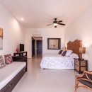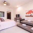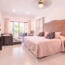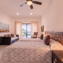 Bedroom 10: Second floor bedroom with a king-size bed (can be converted into two single beds), single roll away bed, single sofa bed, A/C, ceiling fan, TV, safe, sea view, shared balcony, and en-suite bathroom with bathtub, shower, vanity and WC. 2 guests maximum.