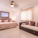 Bedroom 9: Second floor bedroom with a king-size bed (can be converted into two single beds), single roll away bed, single sofa bed, A/C, ceiling fan, TV, safe, sea view, and en-suite bathroom with bathtub, shower, vanity and WC. 2 guests maximum.