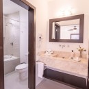 Bedroom 11: Second floor bedroom with a king-size bed (can be converted into two single beds), single roll away bed, single sofa bed, A/C, ceiling fan, TV, safe, sea view, shared balcony, and en-suite bathroom with bathtub, shower, vanity and WC. 2 guests maximum.