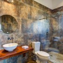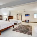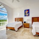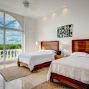 Bedroom 3: Third floor bedroom with two queen-size beds, ceiling fan, A/C, WiFi, sea and jungle views, and en-suite bathroom with shower, vanity and WC. 2 guests maximum.