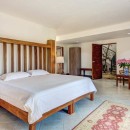 Bedroom 7: Ground floor bedroom with two queen-size beds, ceiling fan, A/C, WiFi, terrace, and en-suite bathroom with shower, vanity and WC. 2 guests maximum.