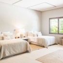 Bedroom 7: Bedroom with two queen size beds, A/C. ceiling fans, TV, WiFi, ocean view, and en suite bathroom with shower, vanity, WC. 4 guests maximum
