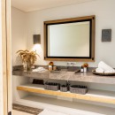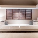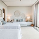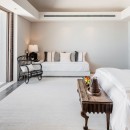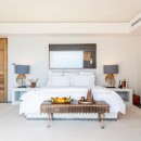 Choose your preferred level of privacy or opt for grandeur. The villa offers a mix of king rooms with oceanfront balconies and larger double bedrooms accommodating up to six people. Each room follows a minimalist approach while providing practical extra bedding options. Six bedrooms are situated in the main house, with the seventh offering private beach access, and an eighth bedroom is located in a separate bungalow.