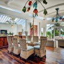 The four bedrooms are private getaways of their own. The master suite includes ocean views and a king bed, the remaining suites feature ocean or garden views, ensuite bathrooms, high end electronics, and king beds. Their spaciousness and beautiful appointments make them wonderful spots for total relaxation and privacy when you are not enjoying the company of companions in the many luxuriously decorated living spaces.