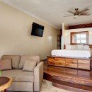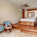 However, the appeal of this villa may prove enough to make it your entire holiday destination. From your freshwater pool you can gaze out towards Cozumel and the sea, or you can stroll through your private grounds to your stretch of private beachfront. Lounge in several al fresco dining or conversation areas, and head inside to enjoy the shared living spaces that include your gourmet kitchen, dining room, and large living room.