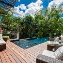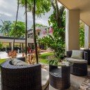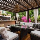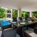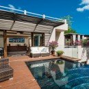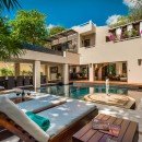 It has been designed to incorporate a large and stunning central courtyard. Here, outdoor living spaces include the large swimming pool, manicured garden, and many lounging and dining areas. Inside the villa, guests enjoy an equally stunning array of shared living spaces that feature a media room for entertainment, a living room for hours of relaxation, and a gourmet kitchen and dining spot.