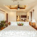 There are five bedrooms at this villa and three of them include an ensuite bathroom with air conditioning, a jacuzzi, a kitchenette, and a sitting area. The other two bedrooms have a full bathroom and two twin beds for any children who are on a family vacation. One of the kid’s rooms even includes a mini-refrigerator to stay stocked up on drinks and snacks.