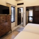 Bedroom 6 (Tortuga): Bedrooms with a king-size bed, A/C, TV, safe and en-suite bathroom with shower, vanity, and WC. This room offers the possibility of an extra single bed. Ground floor. Courtyard view.